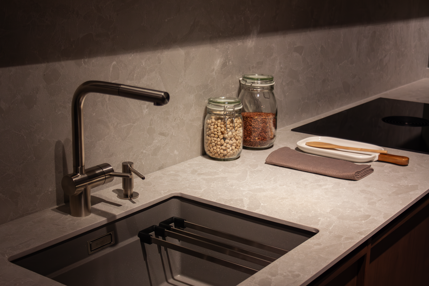 Nuestro equipo de expertos en instalación asegura un montaje perfecto, garantizando que tu encimera no solo esté firmemente fijadas, sino también luzca de manera espectacular.